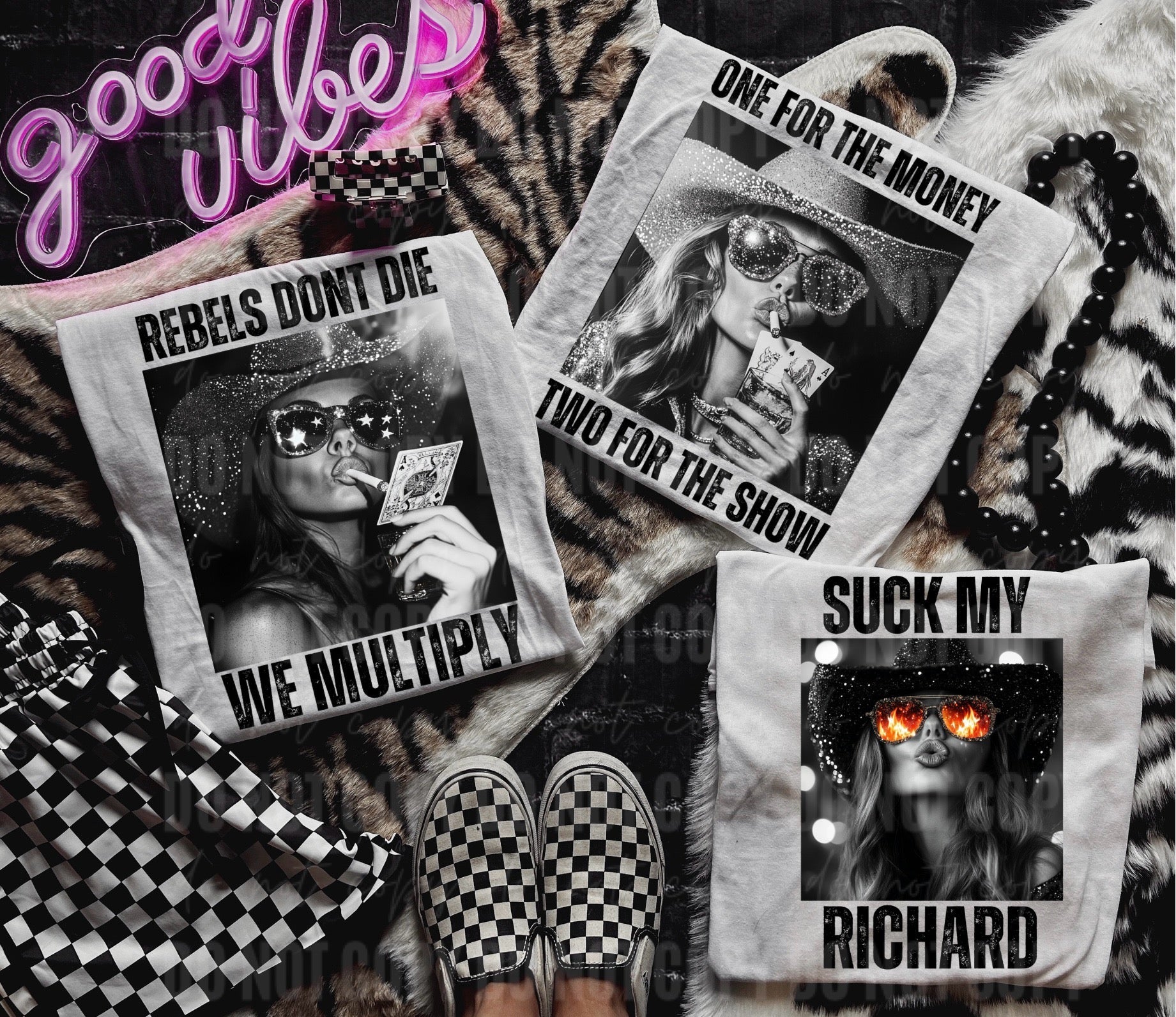 - It is important to take into consideration the color of the design you’d like when choosing a shirt color. The design will NOT be modified under any circumstances.