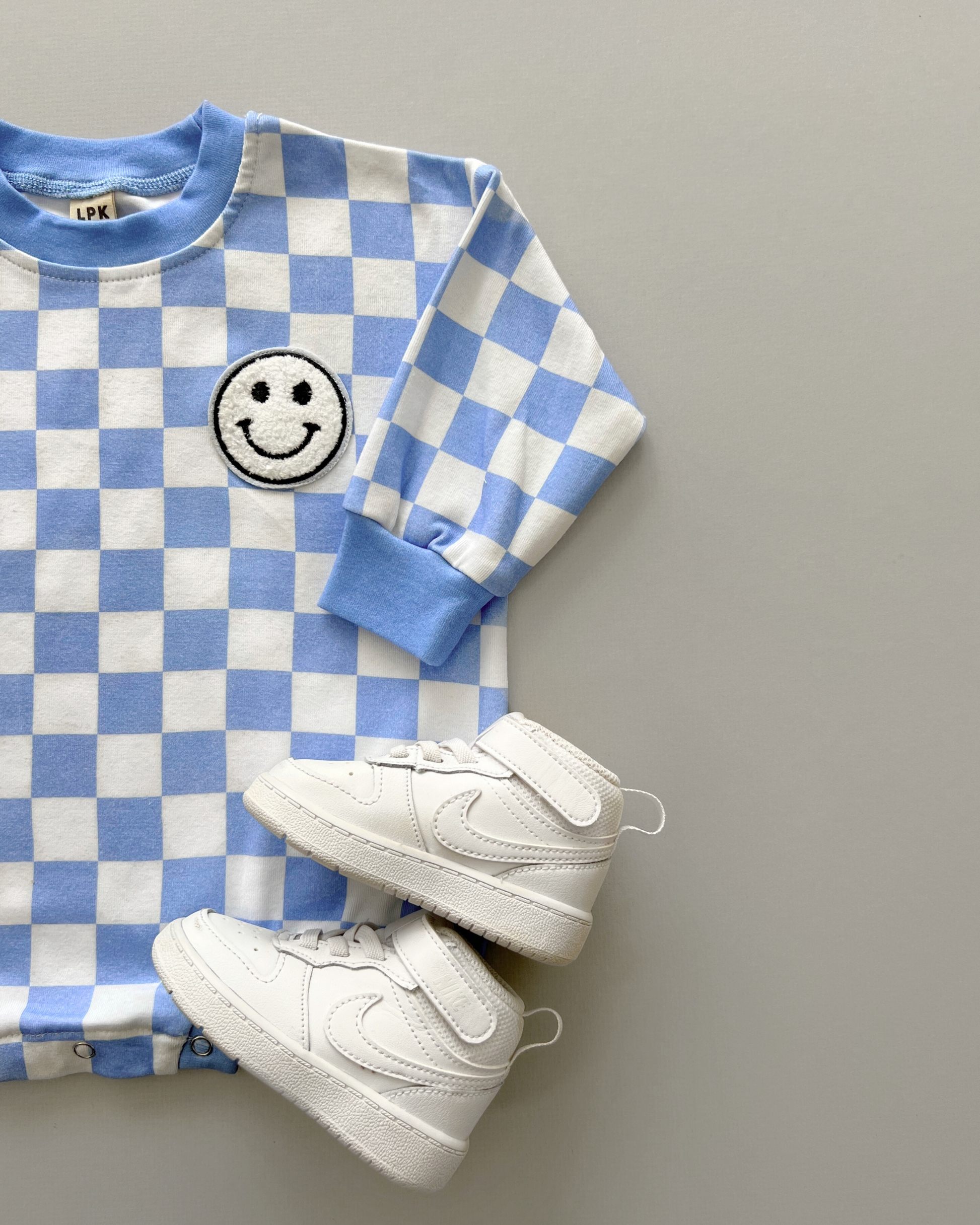 Bubble Romper | Checkered Smiley Blue