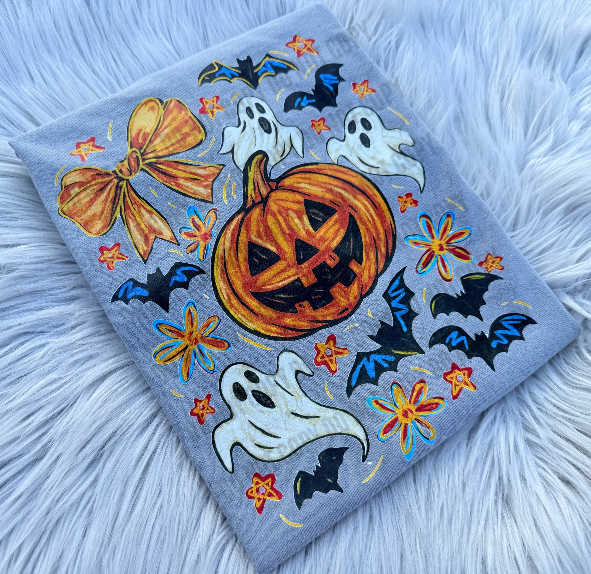 Floral Bow Pumpkin, Bats and Ghosts - WS