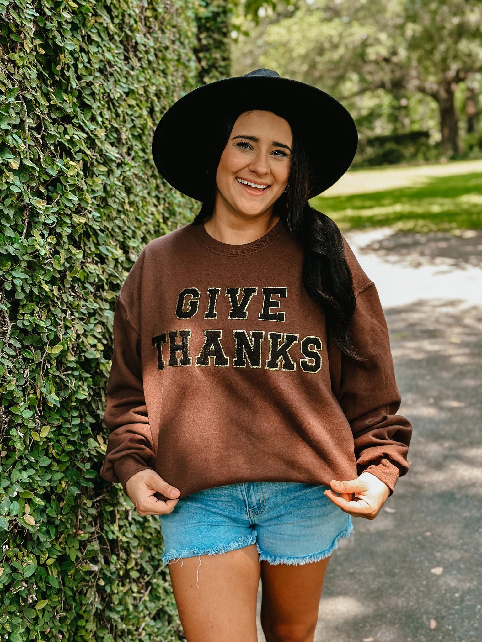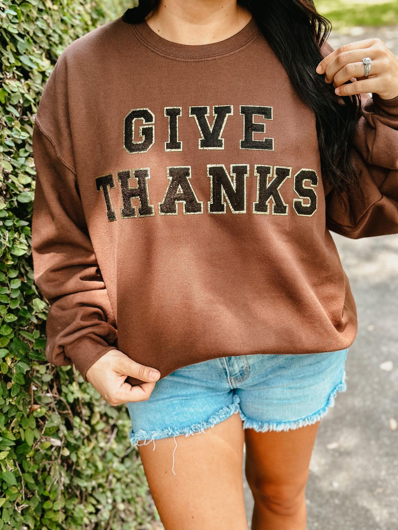 Give Thanks Chenille Patch Thanksgiving Sweatshirt