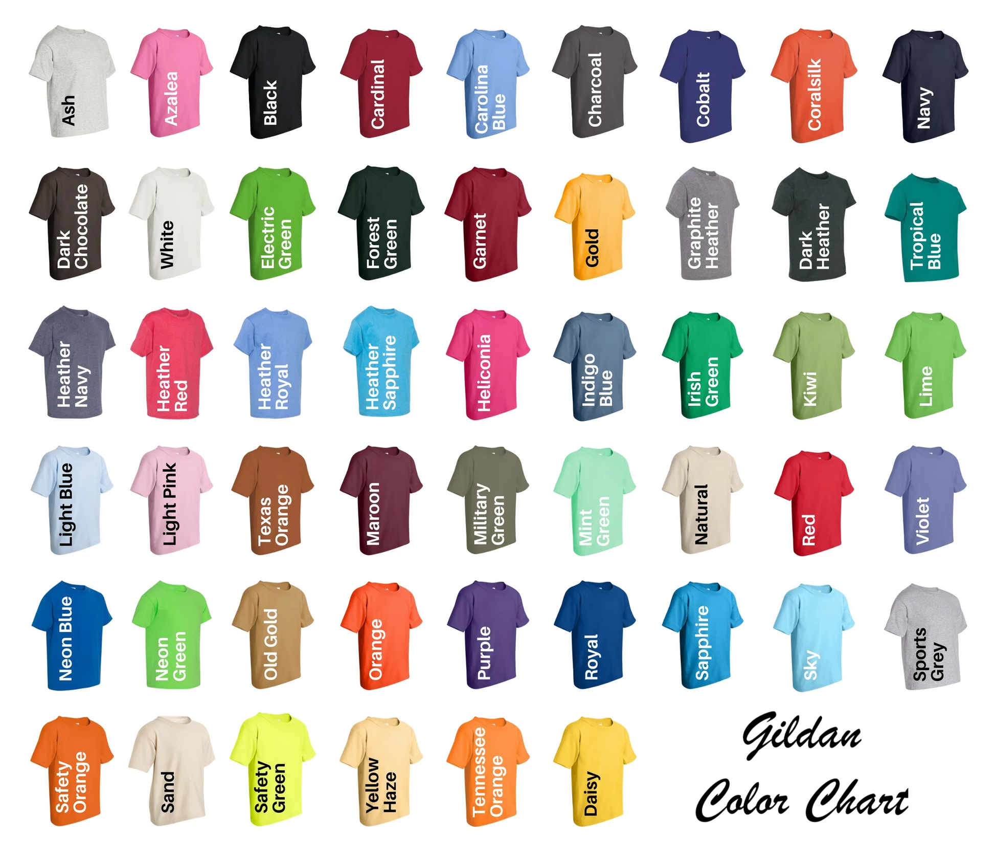 - It is important to take into consideration the color of the design you’d like when choosing a shirt color. The design will NOT be modified under any circumstances.