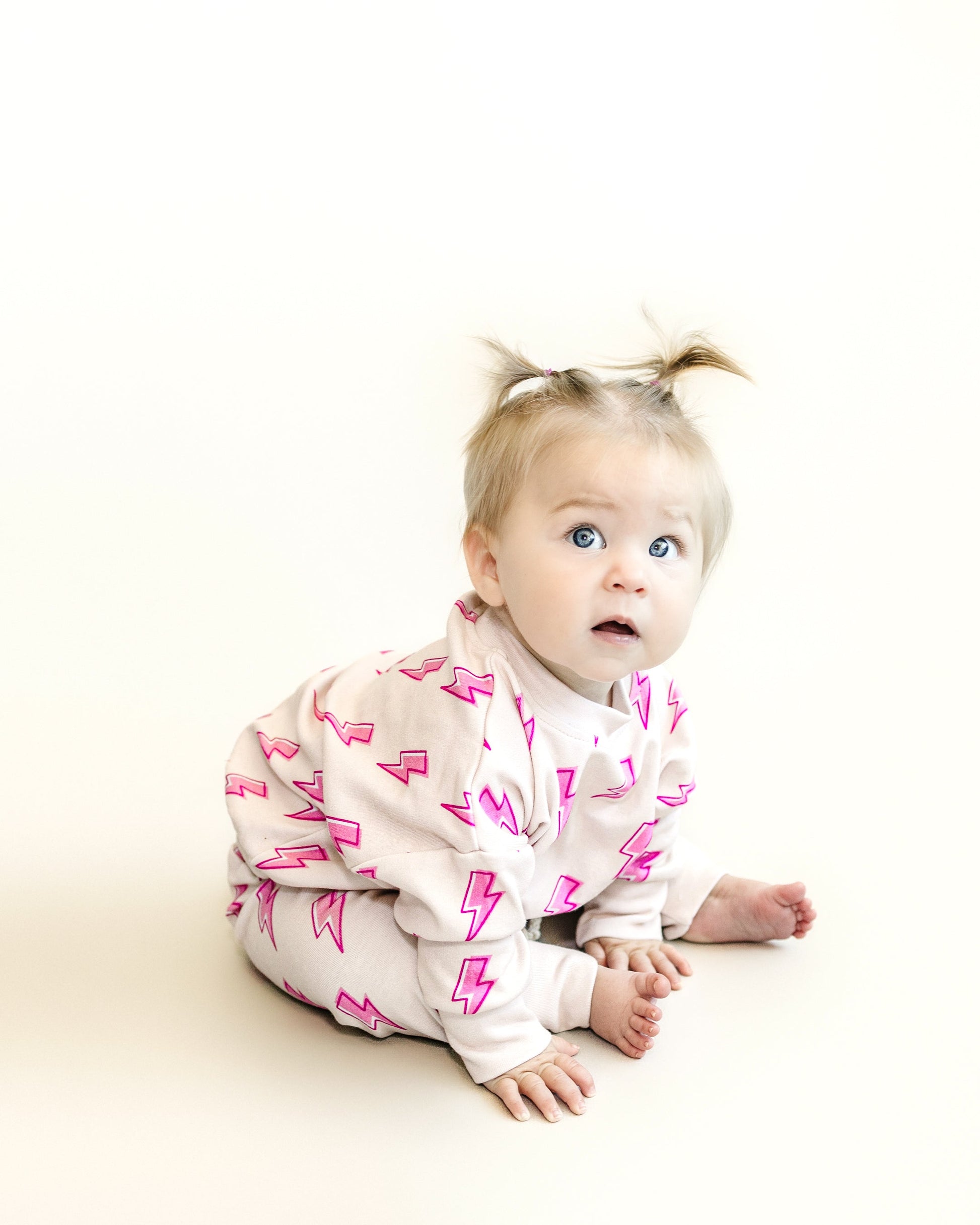 Your little one will look adorable and feel comfy in this playful set with bold bolts. This two-piece set is made of oh-so-soft cotton, perfect for daily lounging during any season! Stylish enough for a day out, cozy and comfortable for play. Gender neutral and up to 9Y, this rad and modern design will be your little one's favorite must-have!