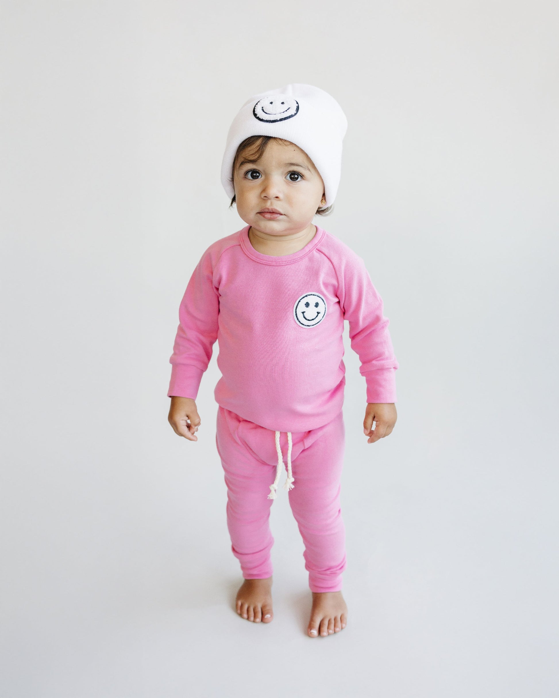 This two-piece set is crafted from oh-so-soft cotton, making it perfect for daily lounging! Stylish enough for outings yet cozy and comfortable for play, it’s an essential for any wardrobe. The fun smiley patch adds a quirky touch to this must-have piece. Gender-neutral and available in sizes up to 9Y, this sweet and simple design is sure to be your little one's favorite!