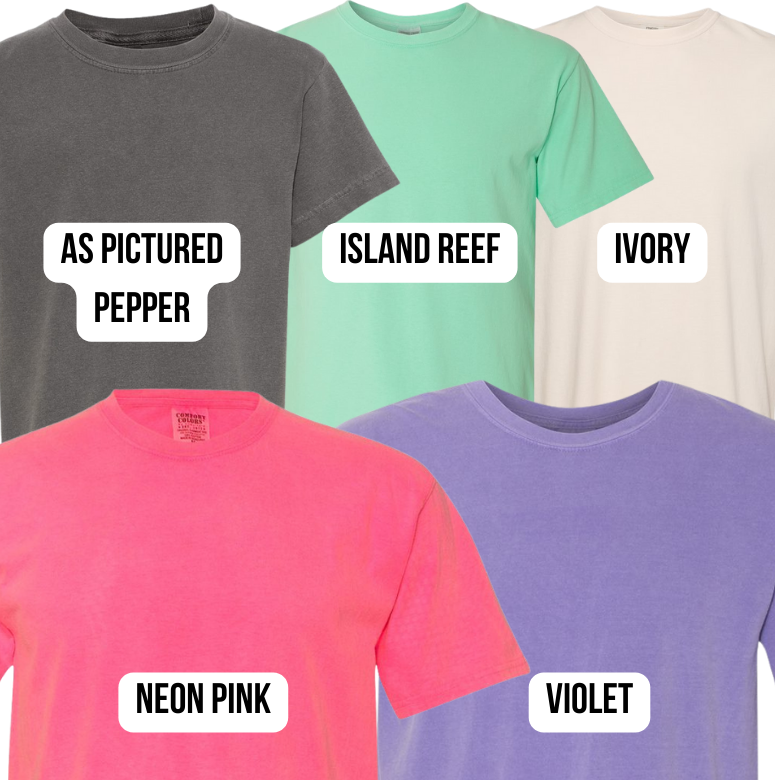 - Color shown is Comfort Colors, if another brand is chosen please keep in mind a similar color will be used, but this may be slightly different.