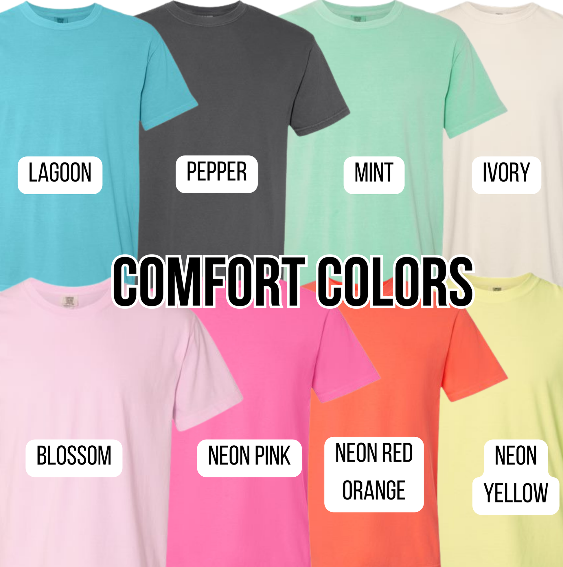 - Comfort Colors as pictured and Tultex/Gildan or comparable is offered as well, color variations may occur, but they will be as close as possible.