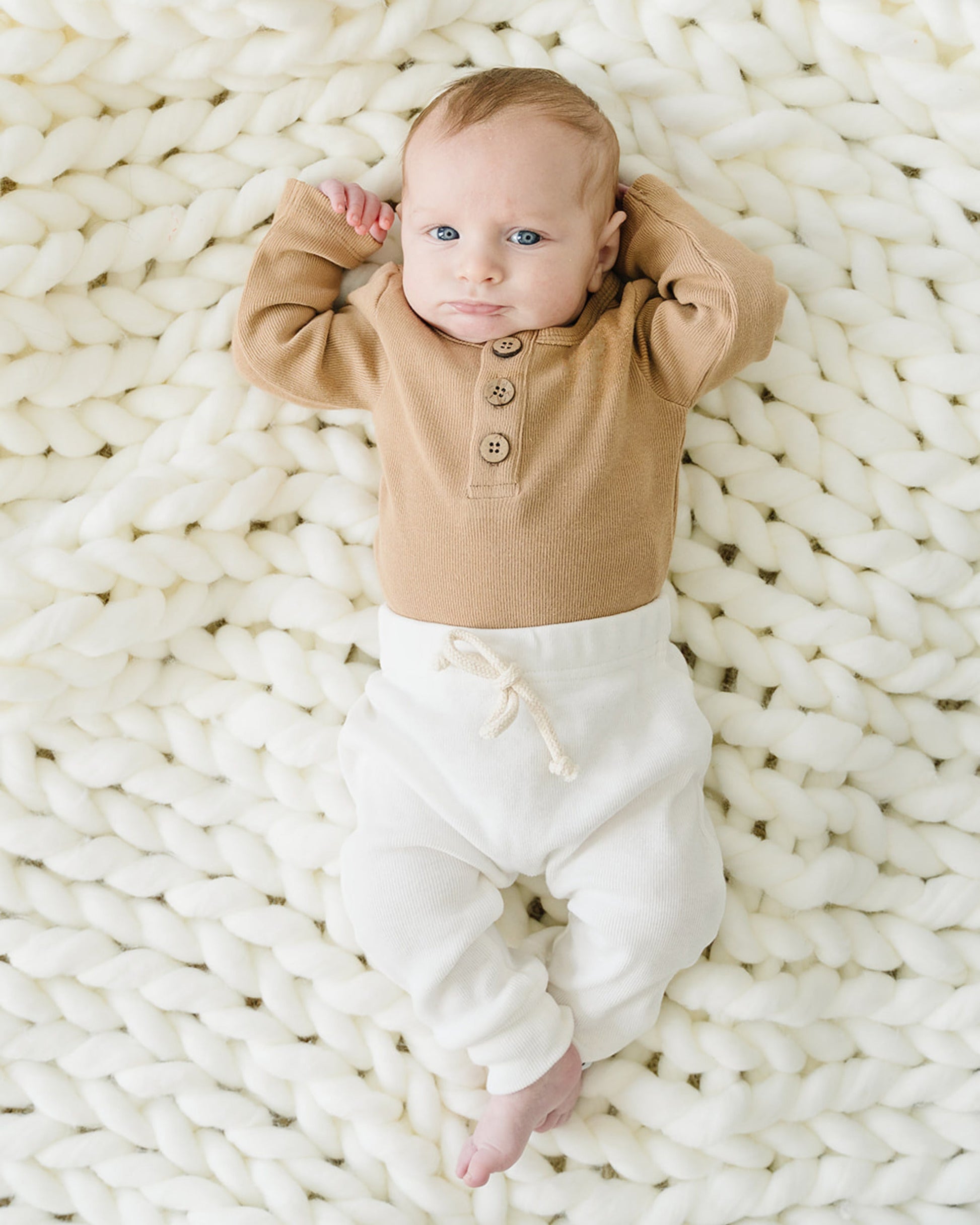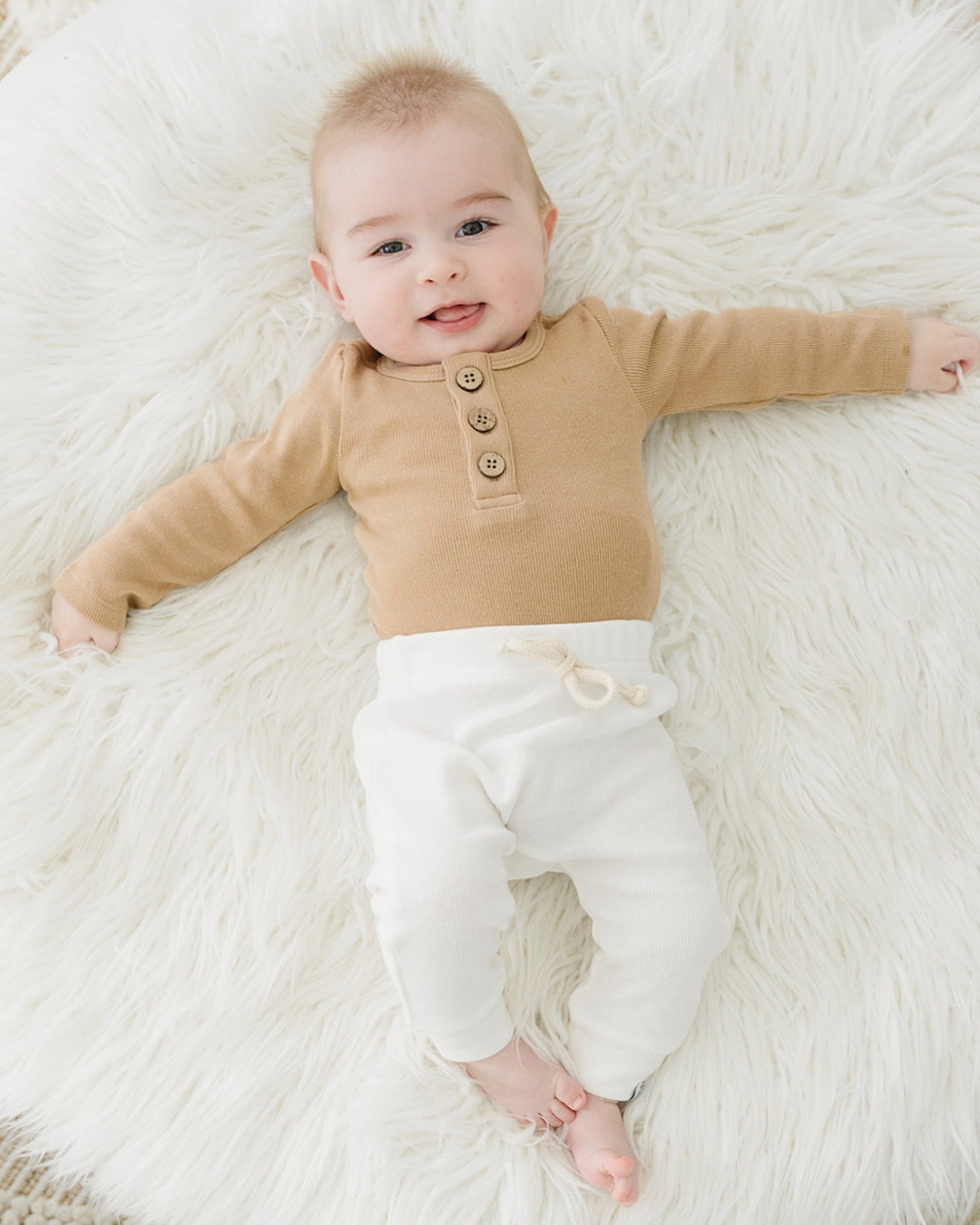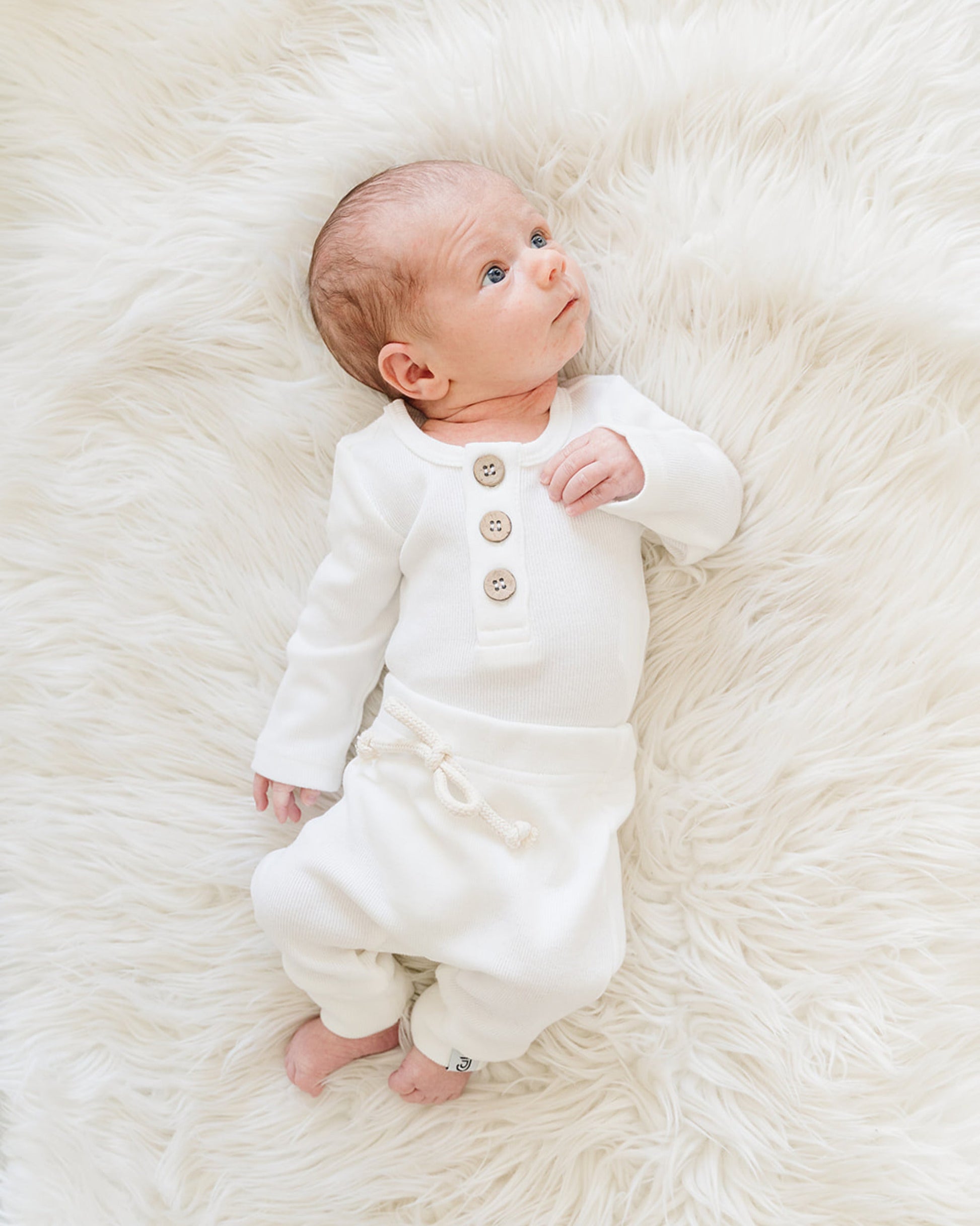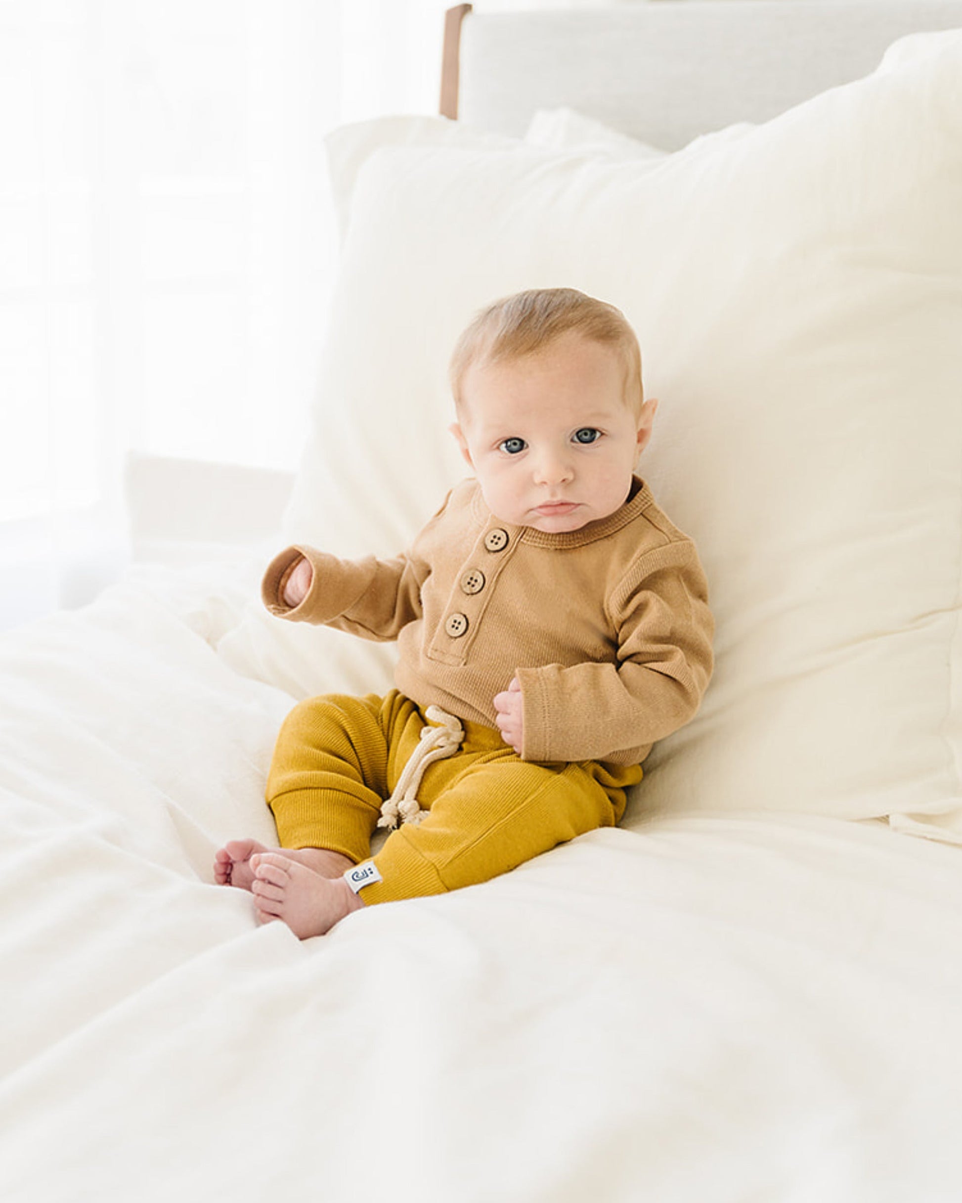 These little joggers are so precious! Not too loose, not too tight; just the right fit for your little one. With soft, breathable organic cotton, and full elastic waistband for easy on and off, these little pants are ready to be moved in! This entire line matches with our bodysuits and are gender neutral, making them even more versatile with each other for endless mix and match possibilities.