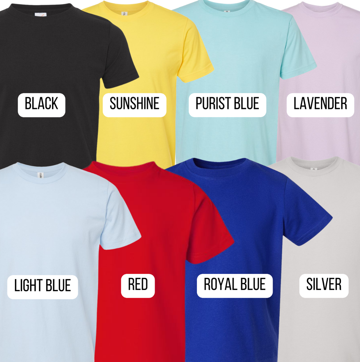 - It is important to take into consideration the color of the design you’d like when choosing a shirt color. The design will NOT be modified under any circumstances.