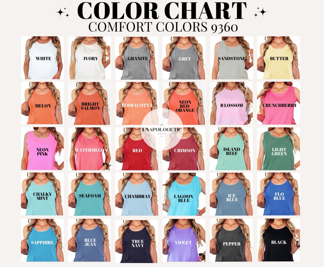 - Comfort Colors as pictured and Tultex/Gildan or comparable is offered as well please refer to color chart listed as Gildan 1800, color variations may occur, but they will be as close as possible.