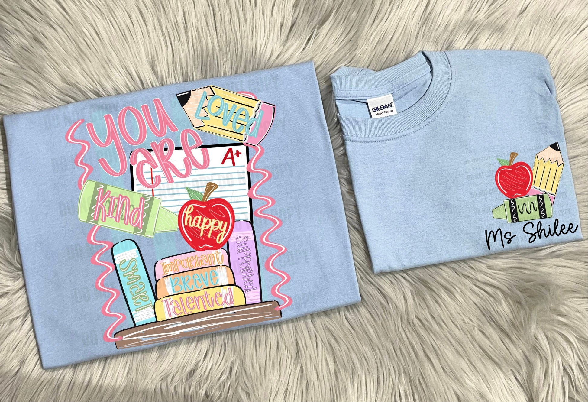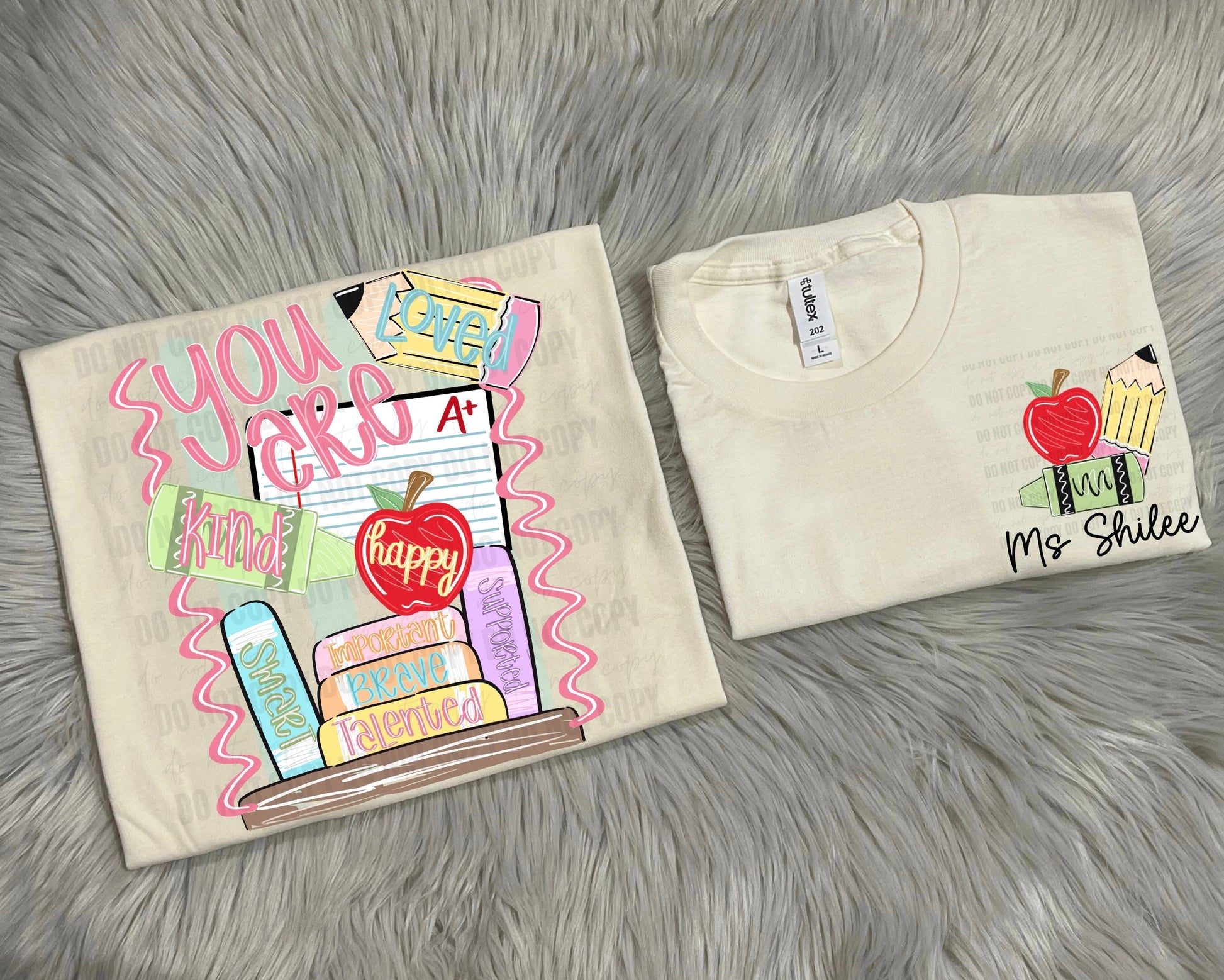 - It is important to take into consideration the color of the design you’d like when choosing a shirt color. The design will NOT be modified under any circumstances.